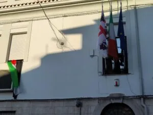 Dopo l’approvazione della mozione, il sindaco di Mamoiada Luciano Barone ha appeso la bandiera della Palestina, donata dalla consigliera della minoranza Anna Mannu, sulla facciata del Comune.