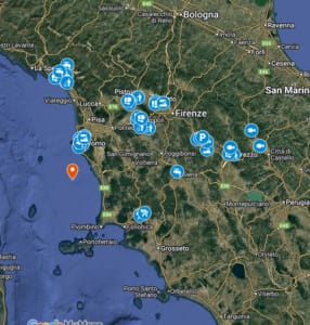 Alcune analisi sono state fatte anche in acque superficiali vicino a discariche e stoccaggio di rifiuti ed è proprio in alcune di queste acque che abbiamo trovato i dati più preoccupanti: sia in quelle alla discarica del Cassero (nel Pistoiese) oltre 2100 ng/l di PFAS e a Podere Rota nel comune di Terranova Bracciolini (AR), riscontrati addirittura oltre 7.300 ng/l.