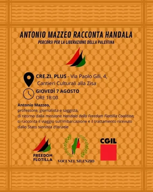 #Palermo, giovedì 7 agosto, ore 18. Antonio Mazzeo racconta "Handala". Percorso per la liberazione della #Palestina #FreedomFlotilla #StopTheGenocide