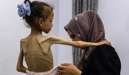 L’attivo affamamento dei bambini di Gaza da parte di Israele, che dura da mesi, è una “crisi umanitaria”, non un crimine contro l’umanità.