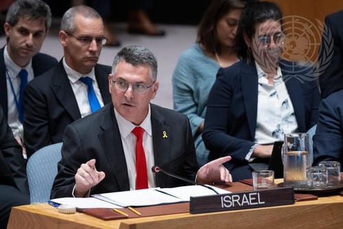 Il ministro degli Esteri di Israele parla al Consiglio di Sicurezza dell’ONU. UN Photo/Evan SchneiderS.E. Gideon Sa’ar