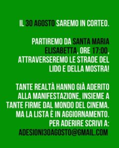Sosteniamo e rilanciamo la mobilitazione per il 30 agosto a Venezia in occasione della Mostra del Cinema