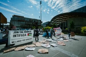 I lavoratori hanno montato un accampamento presso la sede dell’azienda a Redmond, nello Stato di Washington, con tende, opere d’arte che riflettono le sofferenze dei palestinesi e un tavolo negoziale con un grande striscione con la scritta “Microsoft Execs, Come to the Table” (Dirigenti Microsoft, venite al tavolo delle trattative). Diciotto dipendenti sono stati arrestati dalla polizia per violazione di proprietà privata e altre accuse.