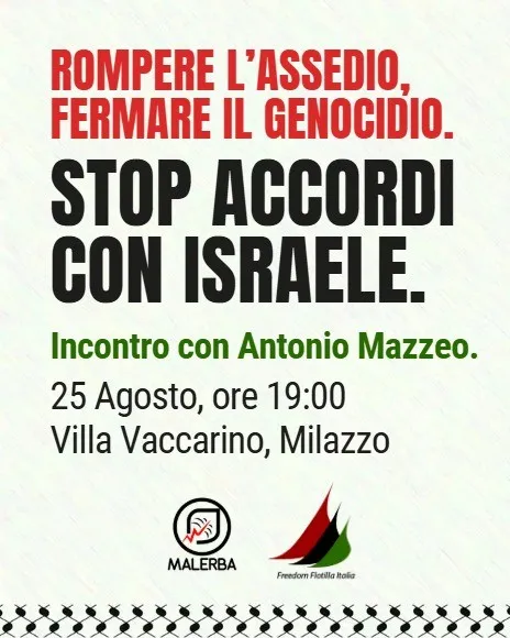 #Milazzo (Me), lunedì 25 agosto, ore 19. Fermare l'assedio, fermare il genocidio. Stop accordi con #Israele