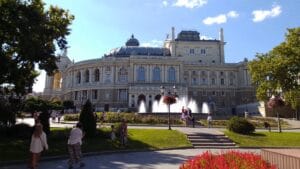 Il basamento della statua della zarina Caterina, rimossa dagli ultranazionalisti ucraini in odio alla Russia, nonostante l’importante ruolo da lei svolto nella storia di Odessa.