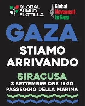 #stopthegenocideingaza🇵🇸 Domani 3 settembre a #Siracusa per abbracciare le compagne e i compagni di #Sumud Flotilla in partenza per Gaza. Passeggio della Marina, ore 18