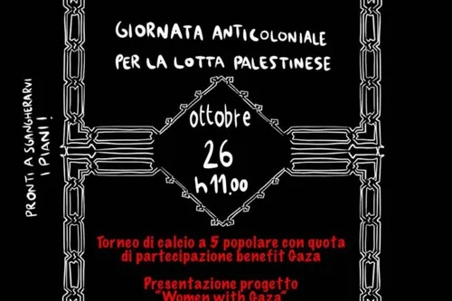 Il collettivo Sgangherz, in collaborazione con Women with Gaza e il collettivo Masiera, è lieto di aderire alla chiamata internazionale di "Sin fronteras ni naciones" per un'azione internazionale in solidarietà alla Palestina. Sabato 26 ottobre ci vediamo al campetto da calcio tra via Gobetti e via Fioravanti (dietro ex XM24 e tettoia Nervi)...