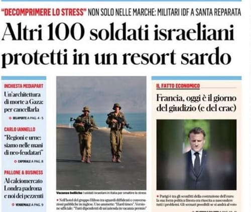 Contropiano - Tuesday, September 9, 2025Veniamo a sapere da Fanpage e da Il Fatto che truppe scelte israeliane vengono a svagarsi in Italia. Una bella vacanza in Sardegna, in un resort di lusso della multinazionale Hilton, cosa c’è di meglio per togliersi di dosso la polvere e il sangue di Gaza? Ospitare soldati di Israele […]