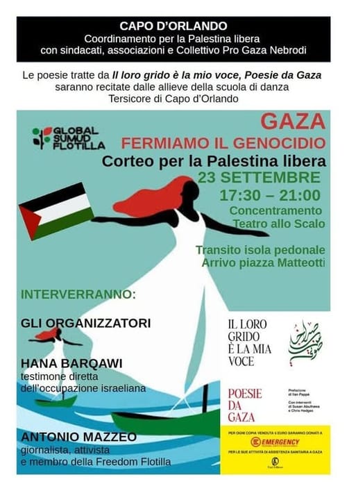 #capodorlando Capo d'Orlando (Me), martedì 23 settembre ore 17.30 - #Gaza: Fermiamo il #Genocidio. Corteo per la #Palestina libera. #stopthegenocideingaza🇵🇸