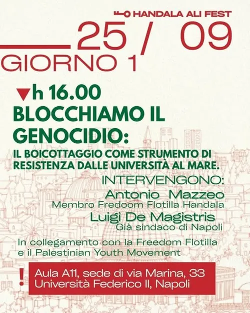 #stopthegenocideingaza🇵🇸 #Napoli, giovedì 25 settembre ore 16. Blocchiamo il Genocidio: il #Boicottaggio come strumento di Resistenza dalle #Università al Mare
