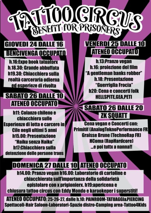 Qui di seguito pubblichiamo la traduzione di uno scritto, un po’ datato ma sempre attuale, come contributo alla chiacchiera al B15 del 24.10.24 (giorno d’inizio della Tattoo Circus di Roma) su realtà carceraria, rivolte e prospettive di lotta contro le prigioni.