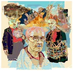 Nella foto: Ritratto artistico di Stanislav Petrov, il colonnello sovietico che nel 1983 evitò la catastrofe nucleare, raffigurato tra simboli di guerra e distruzione. Il suo volto emerge come monito di coscienza e responsabilità umana di fronte alla follia atomica.