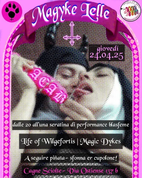 Cagne Sciolte - Tuesday, April 22, 2025Giovedì 24 aprile dalle ore 20.00 all’1.00 MAGYKE LELLE Nella settimana Santa della Giubilella 2025 apriamo le porte del nostro desiderio 🔥 🍋💥Celebriamo l’erotismo dei nostri corpi e la potenza delle nostre relazioni 💦 In faccia a chi ancora crede … Continue reading →
