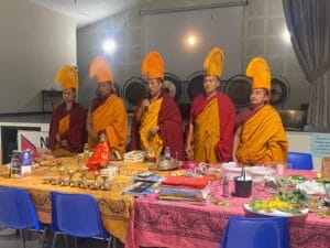 Nel pomeriggio è stato presentato il momento del Bagno sonoro di campane e gong tibetani e in serata gli ospiti hanno potuto gustare una buonissima cena nepalese, realizzata dalla famiglia e dagli amici di Ngima, tutti ottimi cuochi, con piatti tipici: samosa, momo, dal bat turkary, pollo al curry, chapati e yogurt.