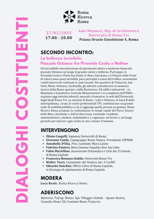 Per questa ragione invitiamo tanti attori diversi a parlarne in una iniziativa pubblica che si terrà il 27 febbraio 2025 alle ore 17.00 a Testaccio alla sede di Roma Tre, piazza Orazio Giustiniani 4, aula Musmeci.