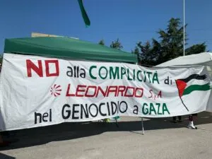 La motivazione è il coinvolgimento della principale azienda italiana della filiera bellica nella complicità con lo Stato di Israele responsabile di genocidio a Gaza, secondo il rapporto delle Nazioni Unite sui Territori Palestinesi Occupati.
