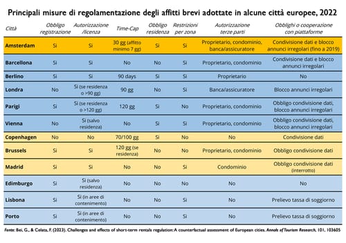 È possibile operare in tal senso in assenza di esplicite norme che consentano ai Comuni di farlo? La risposta è si. A livello nazionale, l’art. 23-ter comma 3 del Testo Unico sull’Edilizia prevede infatti che “il mutamento della destinazione d’uso all’interno della stessa categoria funzionale è sempre consentito, salva diversa previsione da parte delle leggi regionali e degli strumenti urbanistici comunali” (5). A livello regionale, le Regioni avrebbero in teoria ampissimi poteri in merito al ‘governo del territorio’. A questi poteri tuttavia, nel caso specifico dell’utilizzo per finalità ricettive di immobili residenziali, le Regioni sembrano aver volontariamente rinunciato, mentre “più di un dubbio può esser sollevato in merito all’inattività delle Regioni” in questo ambito, laddove l’utilizzo turistico ricettivo non occasionale delle abitazioni ha evidentemente rilevanza urbanistica (Tumminelli, 2023). L’introduzione di una disciplina specifica anche in assenza di un chiaro e specifico quadro normativo ci appare comunque necessaria anche al solo fine di favorire un chiarimento di quelle che sono le prerogative dei diversi livelli di governo.