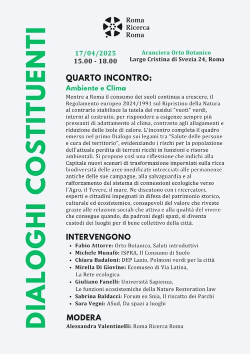 L'articolo Dialoghi costituenti 4: Ambiente e Clima proviene da Roma Ricerca Roma.