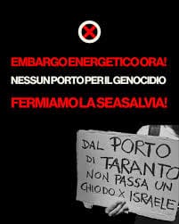 Radio Blackout - Info - Tuesday, September 30, 2025La mobilitazione contro il genocidio sionista ha bloccato il porto di Taranto dove era approdata al molo gestito dall’Eni la nave Sea Salvia ,per caricare il greggio destinato all’esercito israeliano. Di fronte alla mobilitazione dei tarantini l’Eni ha comunicato che la nave non sarebbe stata rifornita e che la destinazione sarebbe stata Port Said in […]