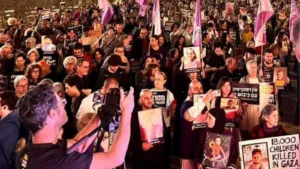 Oggi, giovedì 24 Aprile, siamo in questa piazza con una richiesta chiara: fine della guerra, liberazione di tutti gli ostaggi attraverso un accordo e fine delle uccisioni e della distruzione incontrollata nella Striscia di Gaza.”