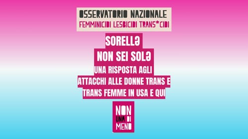 Come osservatorio sulla violenza patriarcale che lavora anche per il riconoscimento della transmisoginia e della violenza transfobica, e che vede al suo interno un intreccio di soggettività femministe e transfemministe, sentiamo l’urgenza di chiarire una volta per tutte: sorella, non sei sola. Le donne cis non sono messe in pericolo dall’esistenza delle donne trans e trans femme. La radice della violenza, in tutte le sue forme, è comune, e le retoriche patriarcali che spadroneggiano in questo momento vogliono farci credere il contrario.