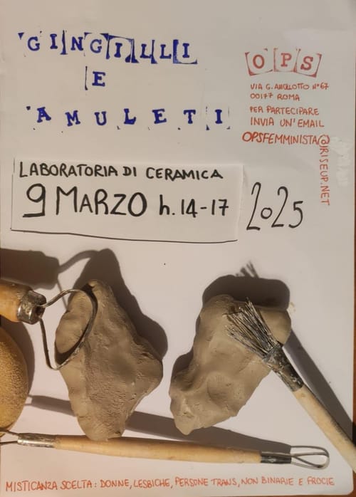 OPS! Occupazione Femminista e Transfemminista - Thursday, March 6, 2025Siamo felici di invitarvi a partecipare alla laboratoria di ceramica e cottura sperimentale Gingilli e amuleti che si terrà domenica 9 marzo e si concluderà con un falò nella sera di luna nuova di questo mese! ✨ La laboratoria è … Continua a leggere→