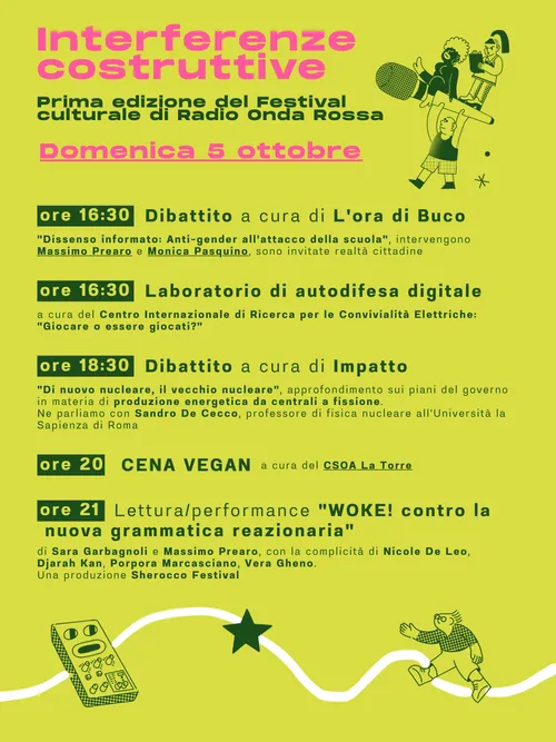 Radio Onda Rossa - Tuesday, October 7, 2025Registrazione dell'incontro sul ritorno al nucleare, previsto dal disegno di legge del governo Meloni, tenutosi nel bucolico quadro del festival "Interferenze costruttive" dell'Ottobre 2025.