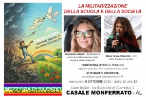Pressenza - Tuesday, October 7, 2025Mercoledì 8 ottobre 2025 alle 16 nell’Aula Magna del Liceo Balbo di Casale Monferrato si svolgerà la prima di 6 conferenze tenute a cadenza quindicinale fino a dicembre 2025 e svolte nell’ambito del programma intitolato PACIF-I-CARE: costruire percorsi di soluzione dei conflitti.