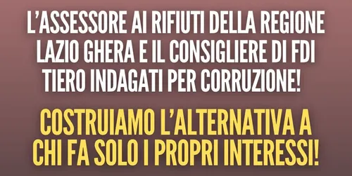 Assessore ai rifiuti del Lazio e consigliere Fd’I indagati per corruzione! Costruiamo l’alternativa!