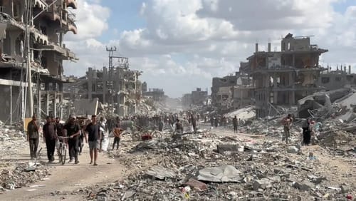 Venerdì decine di migliaia di palestinesi sfollati sono tornati nel nord, percorrendo la strada Al-Rashid. Come Daghmash, molti erano fuggiti da Gaza City in seguito alla brutale offensiva militare israeliana sulla città, iniziata a metà agosto con una dichiarata campagna di pulizia etnica. Al loro ritorno hanno trovato molti dei loro quartieri irriconoscibili.