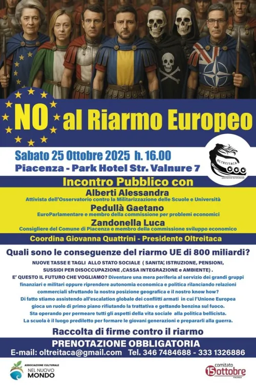 Osservatorio contro militarizzazione di scuole e università - Monday, October 13, 2025Piacenza, sabato 25 ottobre 2025, ore 16.00