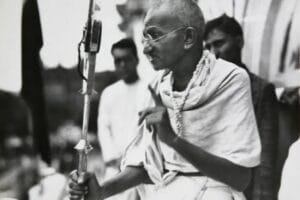 Gandhi si è sempre opposto alla guerra, sviluppò e praticò la disciplina della Satyagraha, una strategia di resistenza non violenta per lottare contro le ingiustizie e il colonialismo britannico che dominava e schiacciava l’India e il suo popolo da oltre due secoli.