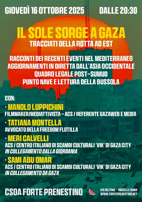 [2025-10-16] IL SOLE SORGE A GAZA • Tracciati della rotta a est @ CSOA Forte Prenestino