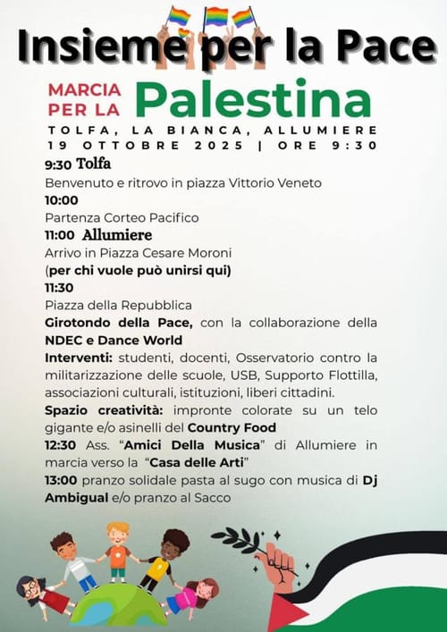 Una marcia, dibattiti, laboratori, DJ set e giochi per una Pace Giusta in Palestina e nel mondo. Una giornata nel nome della giustizia, della solidarietà e della partecipazione.