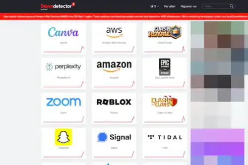 Amazon ha fatto sapere di aver identificato la causa del problema e ha annunciato: "Continuiamo a osservare un ripristino nella maggior parte dei servizi interessati". Secondo quanto riportato da Downdetector, i problemi hanno riguardato diversi servizi e piattaforme fra cui WhatsApp, Open AI, Canva, Clash Royale, Perplexity, Amazon stessa, Airbnb, Intesa San Paolo, Tim, l’Agenzia delle Entrate, Vodafone, Fastweb, Google, Iliad, WindTre e Cloud e Poste Italiane.