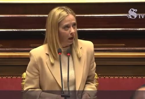 La posizione espressa dal presidente del Consiglio non solo non difende gli interessi degli italiani ma li indebolisce. Mantenere l'unanimità nelle decisioni del Consiglio europeo condanna l'UE alla irrilevanza nelle questioni internazionali e al vassallaggio nei confronti del governo statunitense.