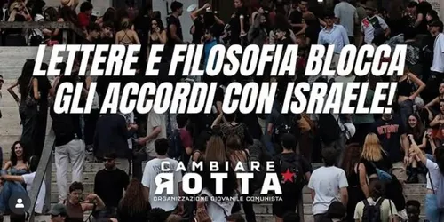 Contropiano - Friday, October 24, 2025LETTERE BLOCCA GLI ACCORDI CON ISRAELE: LA MOZIONE É PASSATA, ORA IN TUTTE LE FACOLTÀ! Dopo mesi di lavoro di studenti e docenti per costruire la mozione presentata dal Comitato Lettere per la Palestina ieri in Assemblea di Facoltà, finalmente Lettere e Filosofia interrompe gli accordi di collaborazione con Israele! […]