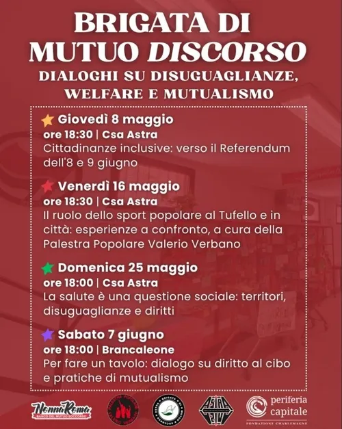Gancio de Roma - Friday, May 2, 2025BRIGATA DI MUTUO SOCCORSO - Dialoghi su Disuguaglianze, Welfare e Mutualismo