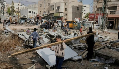 I palestinesi in una strada distrutta in seguito a un’operazione militare israeliana nella città di Tubas, in Cisgiordania, la scorsa settimana. Majdi Mohammed/APIn Cisgiordania nessuno ha sentito parlare del cessate il fuoco a Gaza: né l’esercito, né i coloni, né l’amministrazione civile e, naturalmente, nemmeno i 3 milioni di palestinesi che vivono sotto la loro tirannia. Non percepiscono minimamente la fine della guerra.