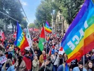La conclusione che ne abbiamo tratto per costruire lo sciopero generale verso la Finanziaria del governo Meloni – che non potrà avere come unico elemento trainante la Palestina o la guerra, ma che dovrà dare grande rilievo anche alle tematiche del lavoro, dei servizi pubblici e sociali, del salario, del precariato, delle pensioni, della scuola, sanità ecc. – è che esso non può retrocedere dall’unità realizzata il 3 ottobre.