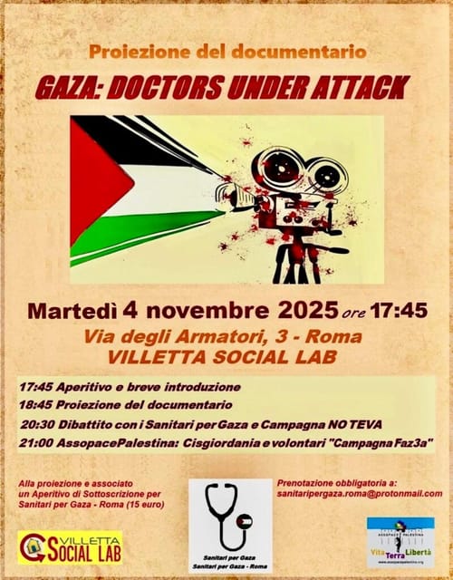 Roma 4 novembre: Documentario e Discussione sui medici di Gaza