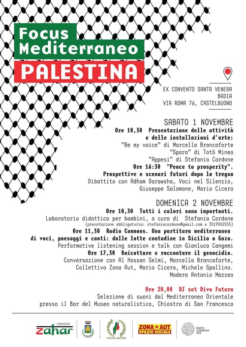 ๐๐๐๐ #๐editerraneo. #๐alestina -Due giorni di incontri, arte e ascolto โ 1 e 2 novembre, Ex Badia S.Venera, #Castelbuono (PA)