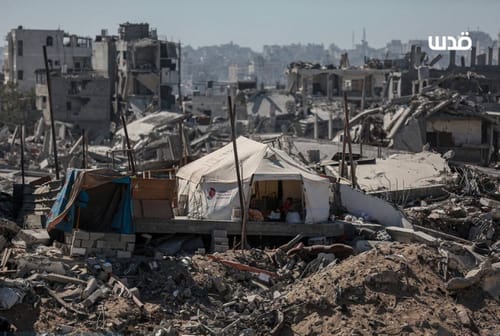 Distruzione massiccia a Jabaliya, nel nord di Gaza. (Foto: via QNN)Definire un cessate il fuoco ciò che sta attualmente accadendo nella Striscia di Gaza è, per definizione, errato. Israele non ha cessato il fuoco, ma ha invece continuato le sue operazioni militari riducendo l’intensità dei combattimenti. Nel frattempo, la cosiddetta “comunità internazionale” sta lavorando a una cospirazione per farsi avanti e assumere il comando del genocidio.