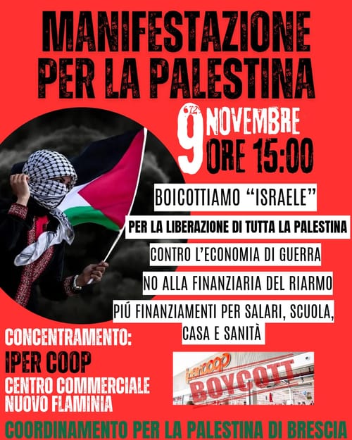 MANIFESTAZIONE PER LA PALESTINA – BRESCIA. DOMENICA 9 NOVEMBRE 2025.
