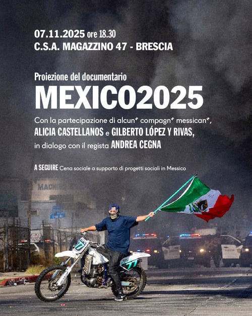 BRESCIA: VENERDì 7 NOVEMBRE PROIEZIONE DEL DOC “MEXICO2025” @MAGAZZINO47