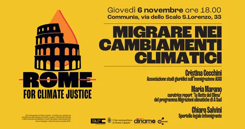 Giovedì 6 novembre, nello spazio sociale Communia (Via dello Scalo S.Lorenzo, 33), parleremo di clima e migrazioni nel terzo evento del progetto “Rome for Climate Justice”, che ha l’obiettivo di approfondire la questione delle migrazioni climatiche sia a livello locale che internazionale. All’iniziativa parteciperanno: