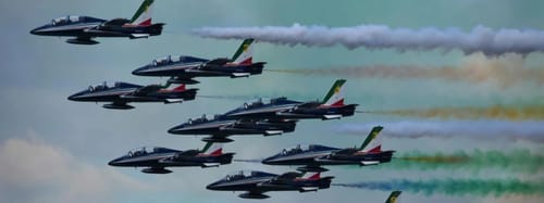 Ne ricordiamo due, 1988 Ramstein (Germania), 2023 Torino. Nel primo caso la collisione aerea durante l’esibizione provocò la morte di 3 piloti e 67 spettatori. Peraltro, due dei tre piloti avrebbero dovuto testimoniare per la strage di Ustica. Nel secondo caso, un’avaria subita da un veicolo, mentre la pattuglia acrobatica stava preparando la partecipazione ad un’esibizione, costrinse il pilota ad abbandonare l’aereo che, successivamente, si schiantò a terra colpendo un’autovettura, uccidendo una bambina di cinque anni e ferendo i genitori e il fratello.