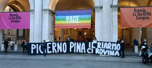 Venerdì 7 novembre si è inaugurato il Festival della Pace patrocinato dal Comune di Brescia. All’inaugurazione ha partecipato la vicepresidente del Parlamento Europeo ed esponente del PD Pina Picierno, di cui è stata contestata con l’esposizione di striscioni sotto Palazzo Loggia la presenza da parte di rappresentanti di Potere al Popolo, Rifondazione Comunista e sindacato USB.