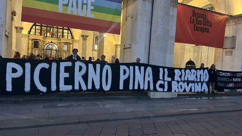 Contropiano - Saturday, November 8, 2025Venerdì 7 novembre si è inaugurato il Festival della Pace, patrocinato dal Comune di Brescia. All’inaugurazione ha partecipato la vicepresidente del Parlamento Europeo ed esponente del Pd Pina Picierno, la cui presenza è stata contestata con l’esposizione di striscioni sotto Palazzo Loggia da parte di rappresentanti di Potere al Popolo, Rifondazione Comunista […]