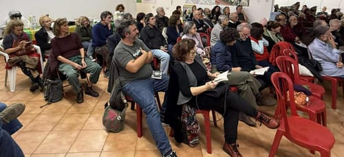 Una sala piena, al Polo civico Esquilino di Roma, ha accolto sabato 8 novembre (malgrado metro chiuse, bus deviati, traffico), la prima presentazione di Gridare, fare, pensare mondi nuovi, l’antologia curata da Gianluca Carmosino e pubblicata da Elèuthera che raccoglie testi di Marco Calabria. Il libro è una bussola che aiuta a comprendere i popoli e le esperienze che ovunque stanno percorrendo sentieri completamente nuovi, alternativi alle logiche del capitalismo, e per questo fragili e imperfetti, tracciando la strada man mano che avanzano. L’intervento di Raúl Zibechi che, in collegamento da Montevideo, ha aperto l’incontro